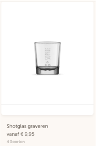 Houd de ontvanger van jouw cadeau niet zo van water drinken, maar meer van alcoholische dranken? Overweeg dan om een shotglas te laten graveren! Het graveren van een shotglas voegt een persoonlijk en memorabel element toe aan je geschenk, waardoor het een speciale betekenis krijgt. dit leuke geschenk blijft binnen het budget en is een leuke toevoegen aan het feest! Klik hier en bestel uw gepersonaliseerde shotglas!