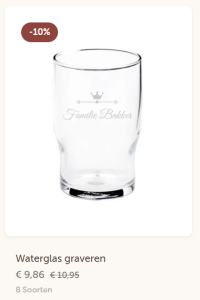 Wil je een bijzonder en persoonlijk cadeau geven? Denk eens aan een waterglas dat gegraveerd kan worden! Het graveren van een waterglas voegt een uniek en persoonlijk tintje toe aan het geschenk, waardoor het een onvergetelijk aandenken wordt. Voor welke gelegenheid dan ook, een gegraveerd waterglas is een perfect cadeau-idee. Klik hier en bestel nu uw gepersonaliseerde waterglas!
