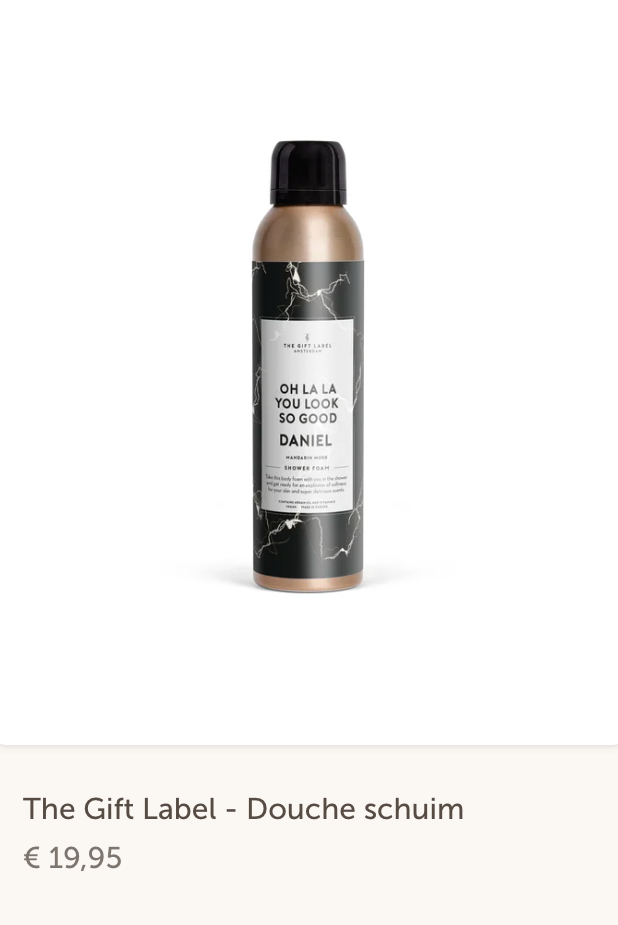 Wat dit douche schuim zo uniek maakt, is dat het gepersonaliseerd is. Voeg een persoonlijke touch toe door de naam van de jarige te laten graveren op de verpakking.